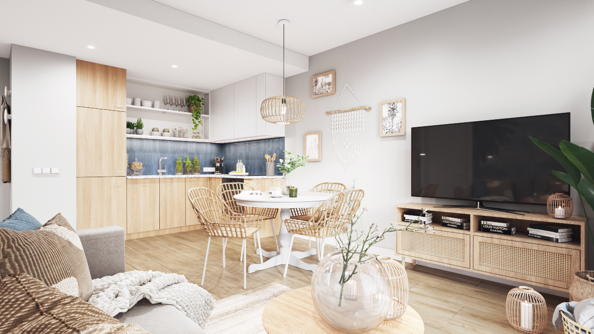 Styl wykończenie BOHO wnosi powiew swobody, egzotyczne motywy i odniesienia do życia Bohemy. We wnętrzach stawia na naturalne materiały, dekoracje z plecionek i traw, dużo światła, roślin i świeżości. Obecnie najmodniejszy z trendów wykończenia i dekoracji wnętrz.