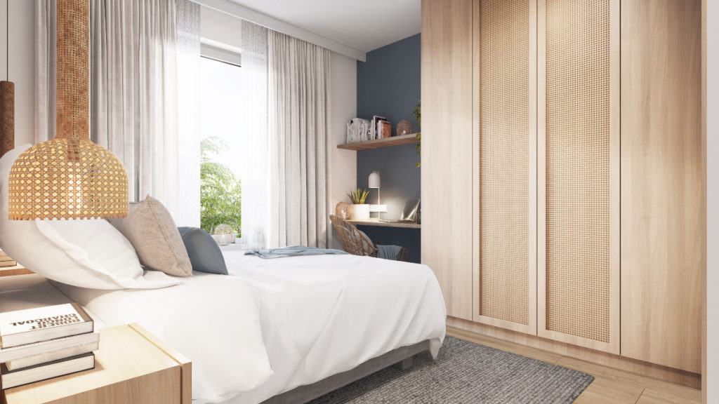 See our proposal for the turnkey finishing of a 1-bedroom flat, in a typical flat layout for rent.