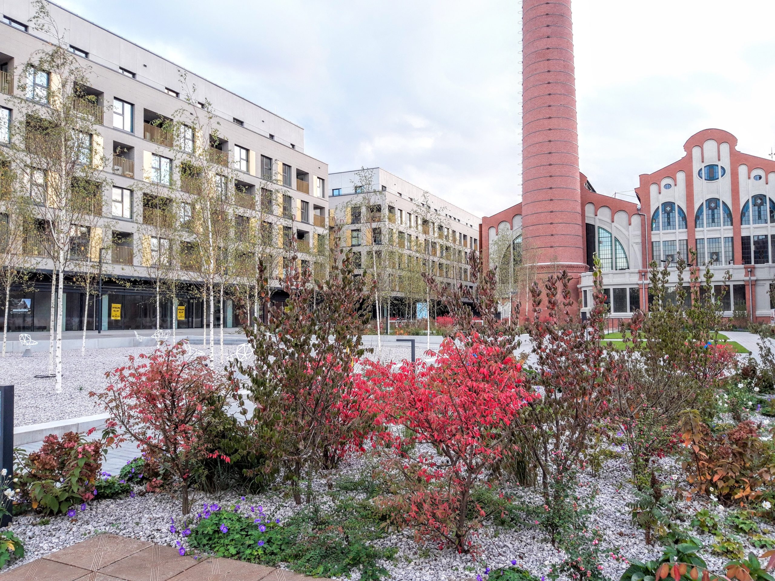 O FUZJI: Deweloper Echo Investment buduje na terenie dawnej fabryki Karola Scheiblera osiedle składające się z 20 budynków o różnorodnym przeznaczeniu, z czego 14 to zaadoptowane budynki historyczne – Jego sercem będzie zabytkowa, secesyjna elektrociepłownia z charakterystycznym wysokim kominem oraz zielony plac wokół. Plac miejski wokół odrestaurowanego budynku ciepłowni oraz 2 budynki są już oddane do użytkowania, w jednym z nich działa market Żabka. Na placu organizowane są cykliczne imprezy, zorganizowano też plac zabaw dla dzieci.