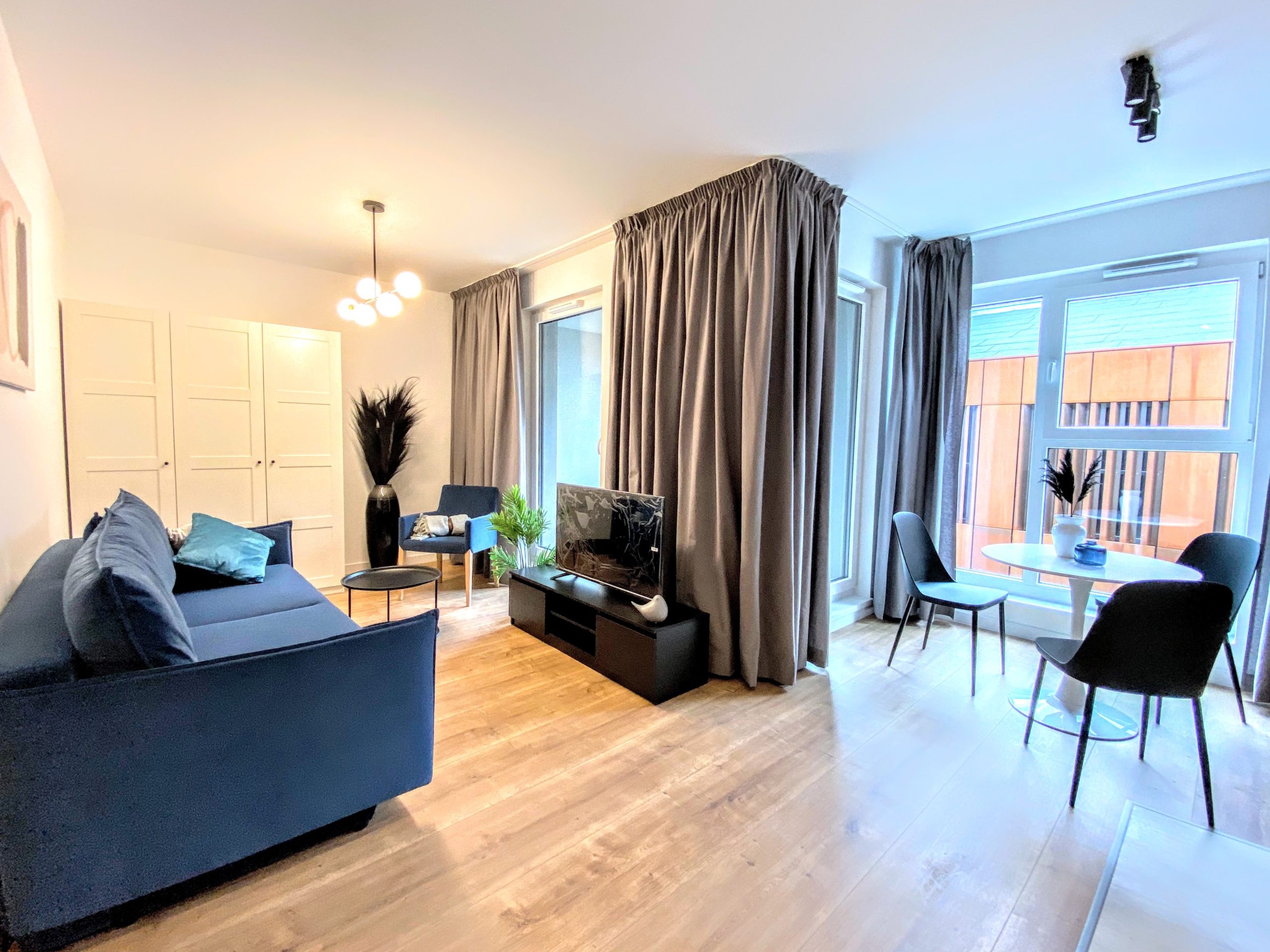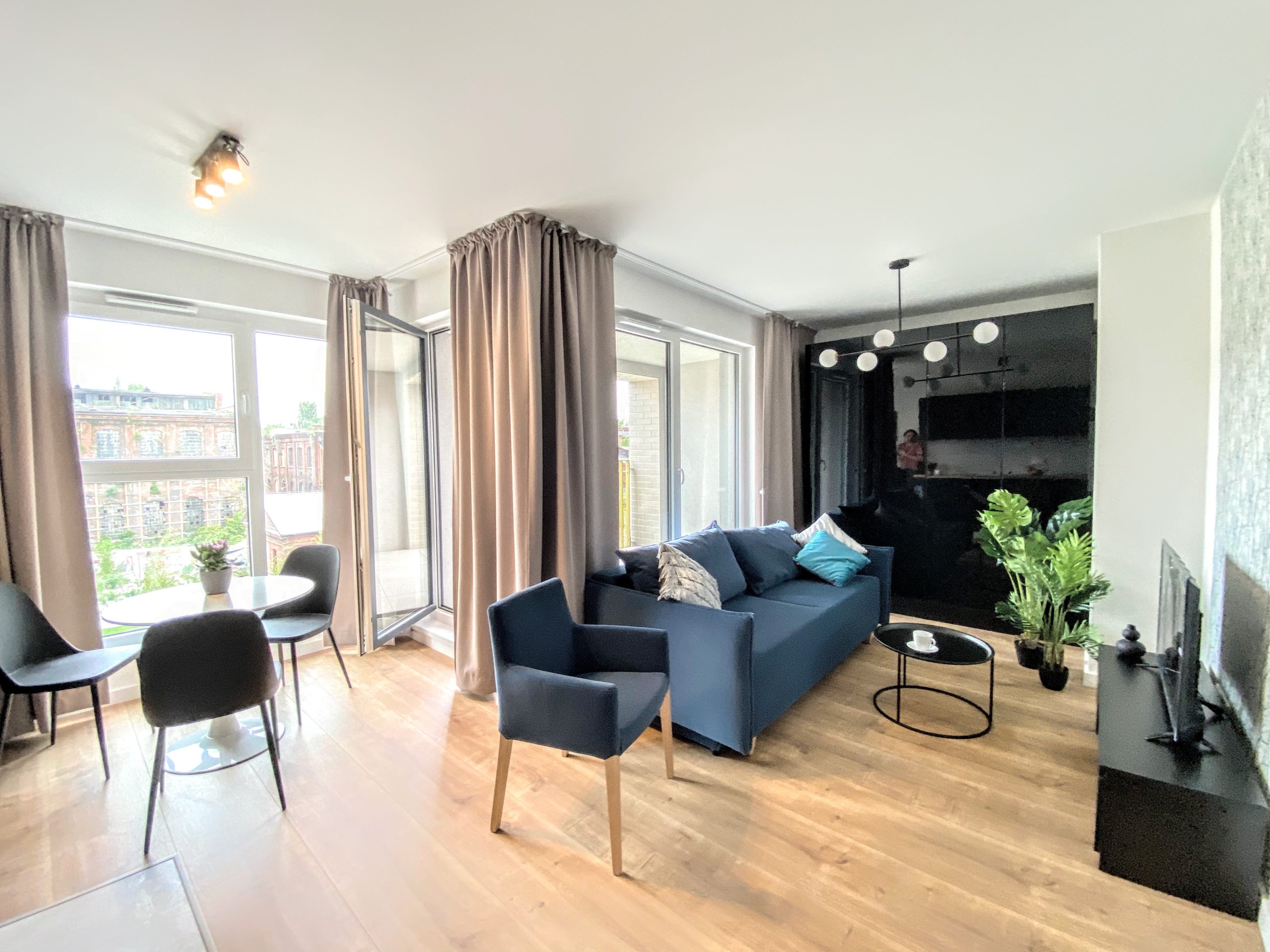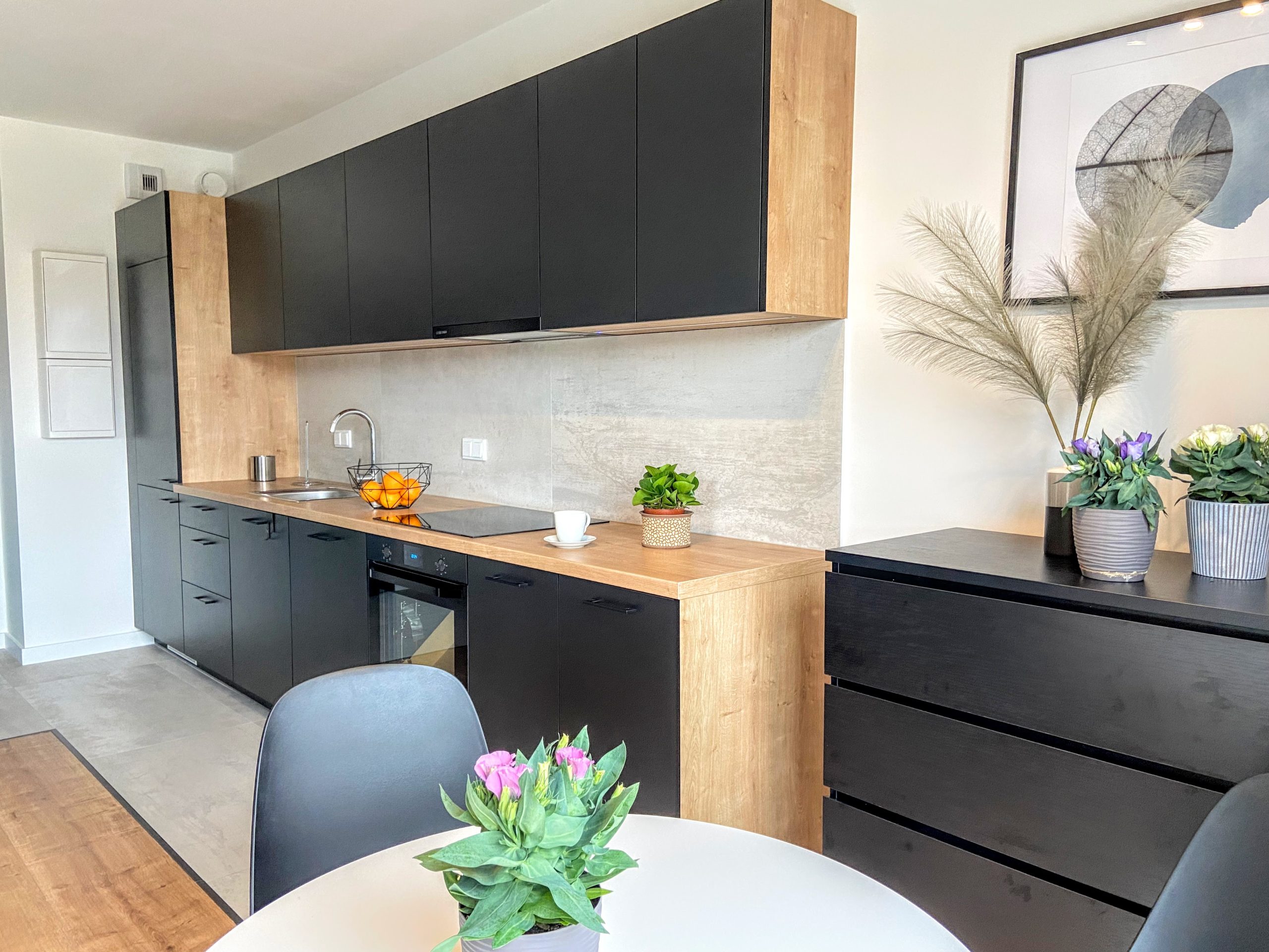 - Apartamenty są w pełni umeblowane i wyposażone w nowe sprzęty AGD (zmywarka, pralka, płyta indukcyjna lub elektryczna, piekarnik, Smart TV).