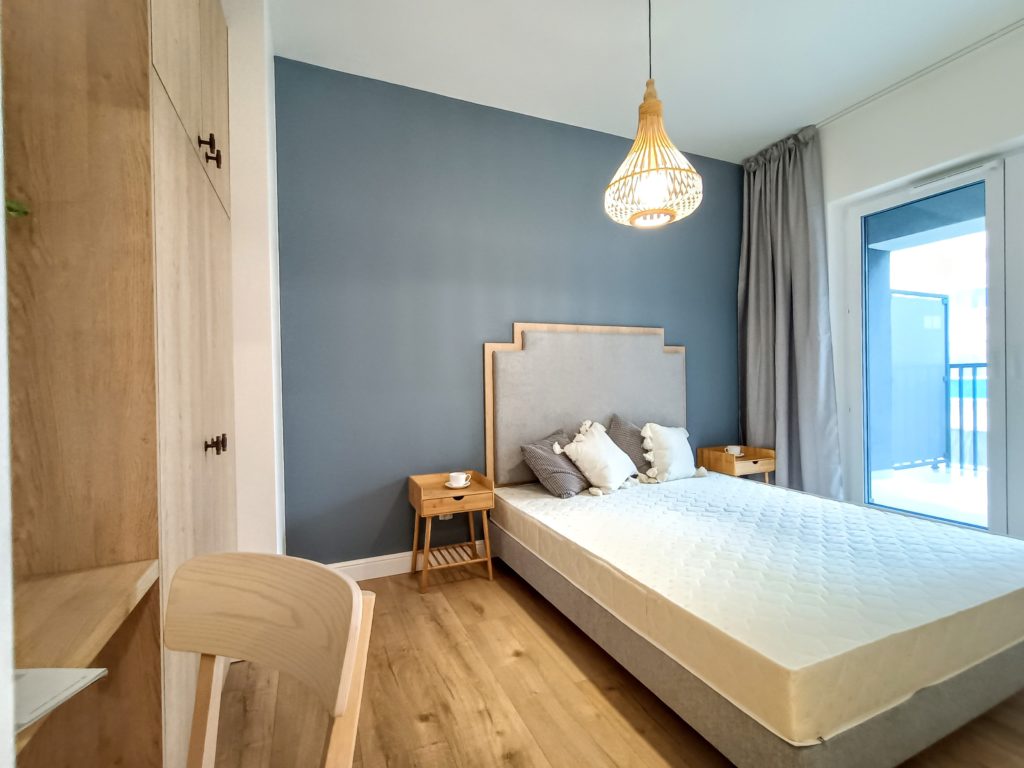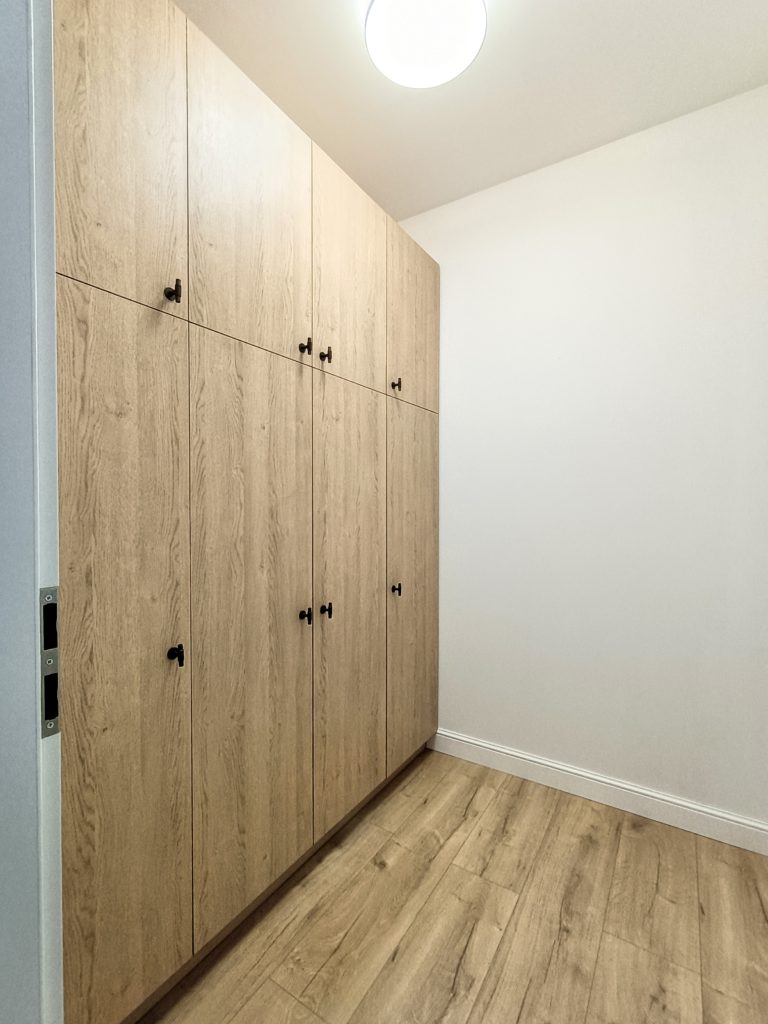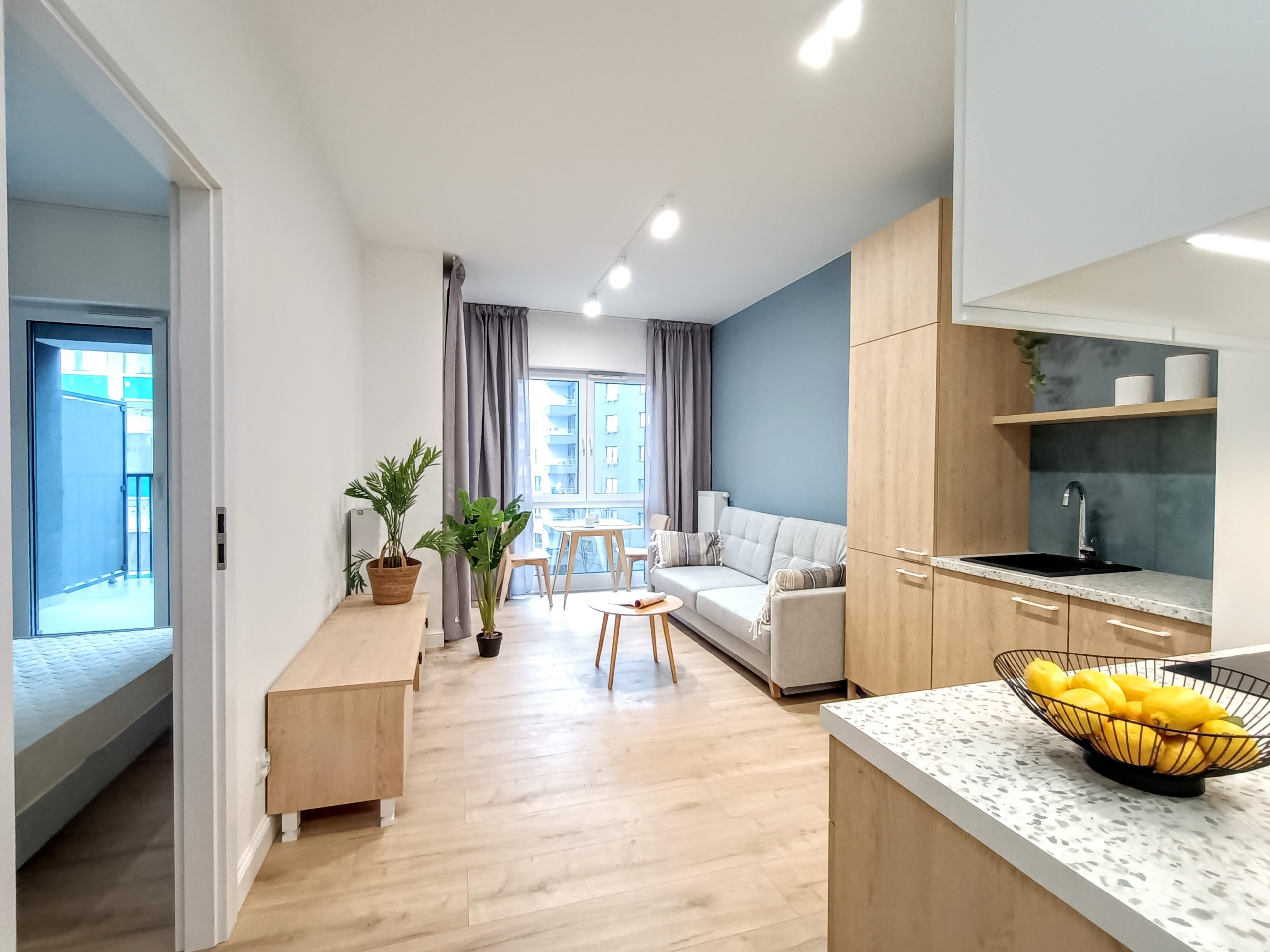 Mieszkanie zrealizowano w pakiecie wykończeniowym Boho Simple, bez dodatków dekoracyjnych. Mieszkanie ma funkcjonalny układ je - salon z aneksem kuchennym, duża sypialnia oraz ogromna szafa w garderobie przy wejściu. Mieszkanie, podobnie jak inne w tej inwestycji, ma duże okna z ładnym widokiem na zieleń i stawy oraz obszerny balkon typu loggię. Całości dopełnia jasna i wygodna łazienka z wanną.